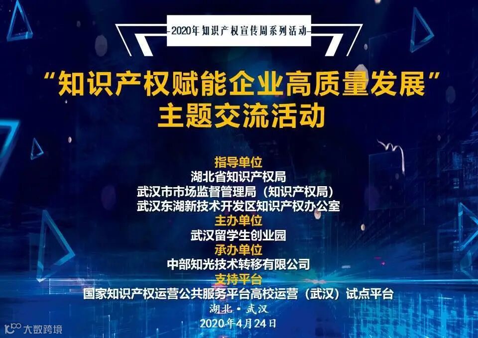 4月24日,由湖北省知识产权局、武汉市市场监督管理局(知识产权局)、武汉东湖新技术开发区知识产权办公室指导,武汉留学生创业园主办的“知识产权赋能企业高质量发展”主题交流活动圆满落幕。