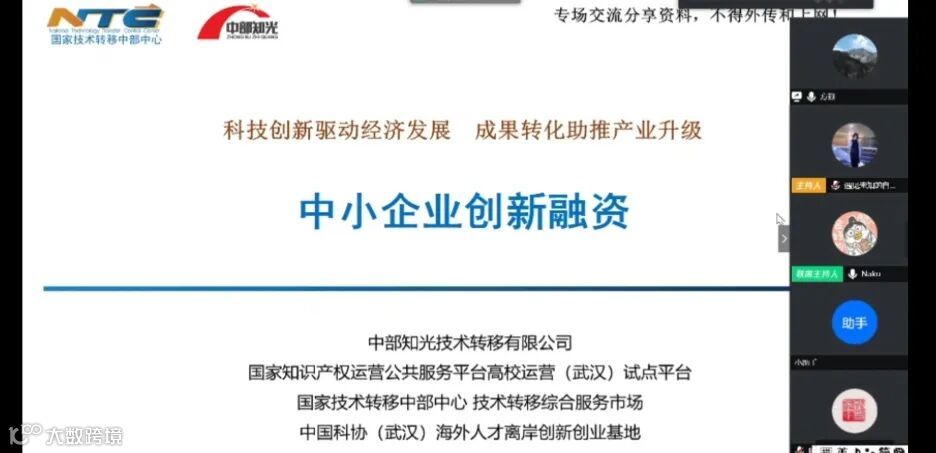 本场活动邀请了中部知光技术转移有限公司科技金融部经理方烈、副总经理杨明为大家解析企业创新融资等相关知识。活动吸引了近160位企业高管、财务、知识产权负责人参与其中。