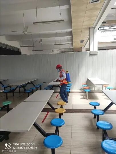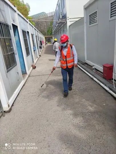 封控期间,每天项目部三名同志与工人同步上下班,在现场对作业内容进行巡查监督,并督促作业人员工作中做好个人防护、注意人身安全。项目部每天对所有人员进行疫情防控教育,教育内容包括防疫知识、健康监测、作业、住宿、用餐、出行等具体要求,并做好教育交底记录。项目部组织工地所有人员网格化、精细化有序参加核酸检测和抗原检测,避免人群聚集和交叉感染,全员110人多次检测结果皆为阴性,无一人感染。项目部监督专业人员对项目现场进行消杀作业,确保办公区和住宿区内每日消毒不少于3次,其他公共区域每日消毒不少于2次,同时做好相应消毒记录,张贴于施工现场、办公区、生活区等醒目位置。