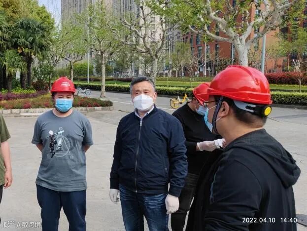4月1日,普陀区区长视察项目工地,检查疫情防控落实情况。在了解项目部各项防疫措施后,区领导对工地防疫工作给予肯定,并要求继续严格执行现有防疫政策,不能有半分松懈。