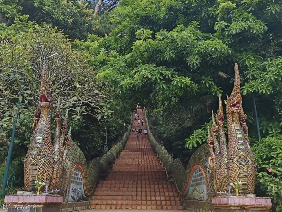 沿着306个台阶攀登而上,来到清迈最著名的双龙寺,一座由神像选址,充满传奇色彩的避暑胜地,可以远眺清迈全景。