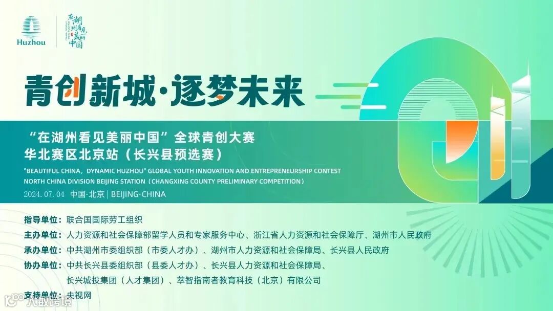 本次“在湖州看见美丽中国”全球青创大赛是年度“青创新城”建设的重要载体,由联合国国际劳工组织指导,人力资源和社会保障部留学人员和专家服务中心、浙江省人力资源和社会保障厅、湖州市人民政府主办,中共湖州市委组织部(市委人才办)、湖州市人力资源和社会保障局承办,旨在面向全球吸引一批优秀青年人才和团队到湖州创业。