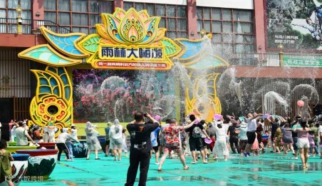原始森林公园的泼水狂欢地,在这里我们可以在热情似火的“傣迪”声中尽情的泼洒祝福的圣水,迎接祝福,泼湿全身、幸福终生!在这里天天都能感受到傣族最盛大的节日——泼水节。