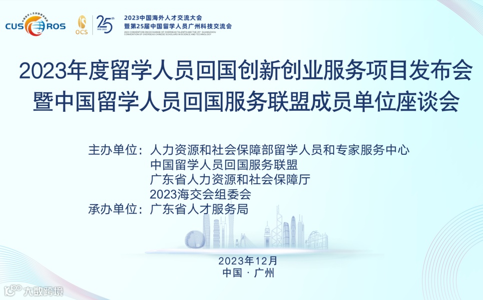 作为今年海交会的重要板块,“2023年度留学人员回国创新创业服务项目发布会暨中国留学人员回国服务联盟成员单位座谈会”成功举办。会议由人力资源和社会保障部留学人员和专家服务中心、中国留学人员回国服务联盟(以下简称“服务联盟”)、广东省人力资源和社会保障厅、2023海交会组委会共同主办,广东省人才服务局承办。