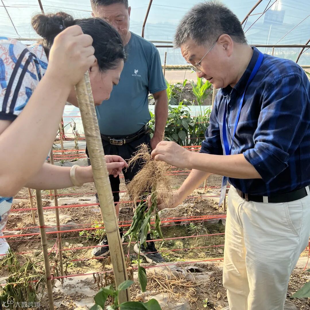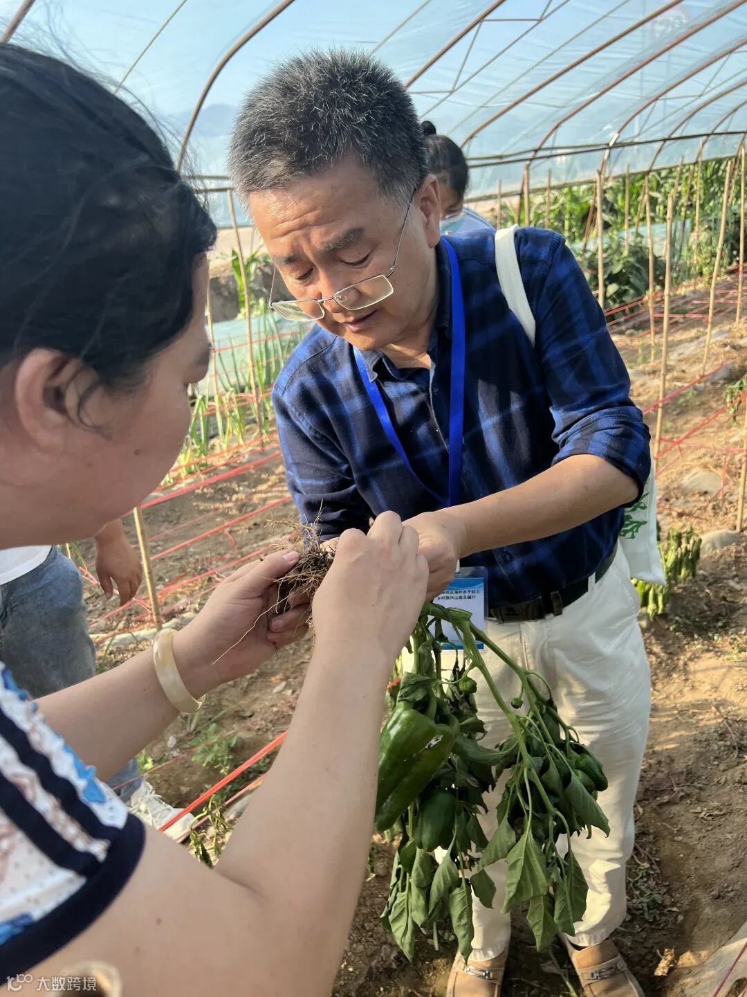 王志伟实地了解小西红柿、尖椒、青椒、黄芪等作物生长情况,针对青椒大棚里部分青椒在生长过程中变蔫而难以寻因的问题,他现场“刨根问底”进行排查,根据根系的颜色、形状等分析可能导致变蔫的不同原因,并分别提出应对之策,解决了农户的燃眉之急。