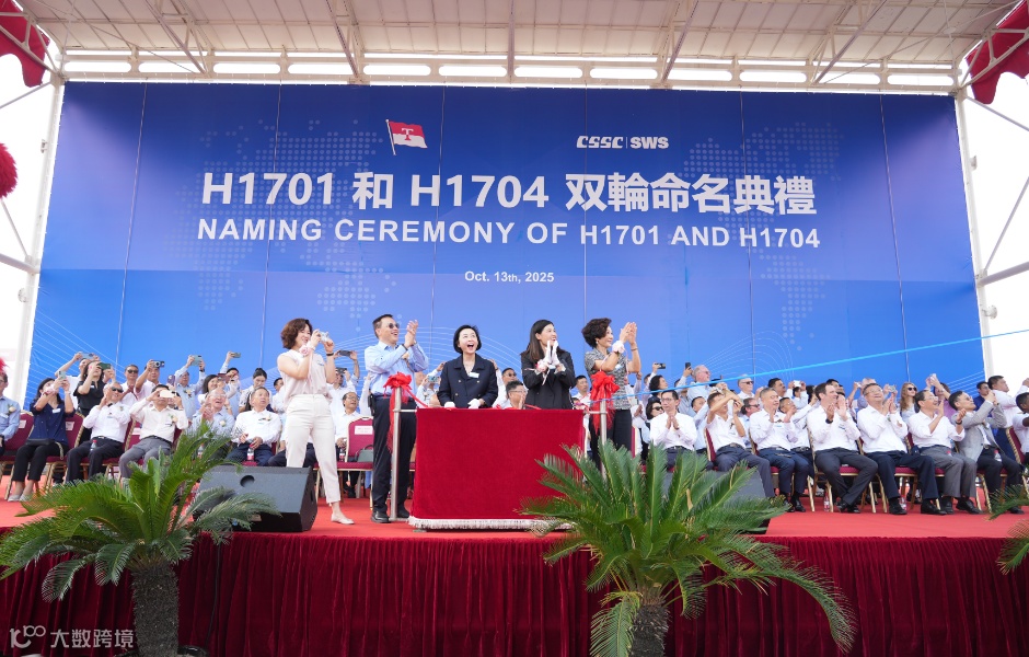 时隔二十余年,双方再次携手。今天同时命名的“CSK JUBILEE(瑞庆)”轮及“KWK REVELATION(和昭)”轮是外高桥造船再次为泰昌祥集团精心打造的绿色环保型油轮,通过水动力优化等技术创新,两艘船均全面满足EEDI三阶段、Tier III环保标准及硫氧化物排放要求,充分体现了节能、安全与经济性的完美结合,综合性能达到世界一流水平。