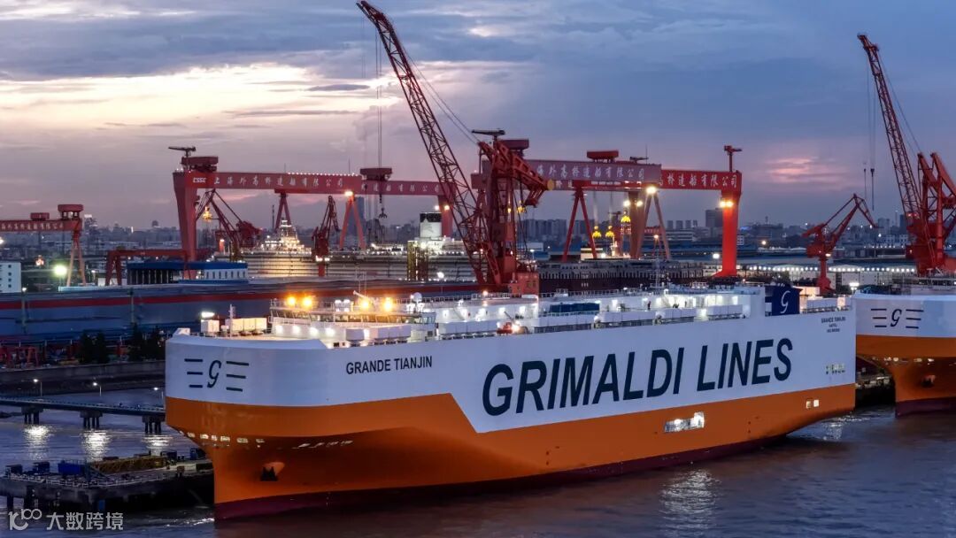 此次交付的“GRANDE TIANJIN”轮是外高桥造船为Grimaldi公司建造的首艘9000车位汽车运输船(PCTC),具备9000车标准装载能力,可兼容电动车、传统燃料汽车及重型滚装货物。该船采用新型低油耗主机,集成扭曲舵、毂帽鳍等节能装置,显著降低能耗;配备中压岸电系统实现靠泊零碳排放,并获得意大利船级社“氨燃料预留(Ammonia Ready)”认证,为未来零碳燃料改装预留技术空间。“GRANDE TIANJIN”轮的船坞及码头建造周期仅179天,刷新同型船建造纪录。