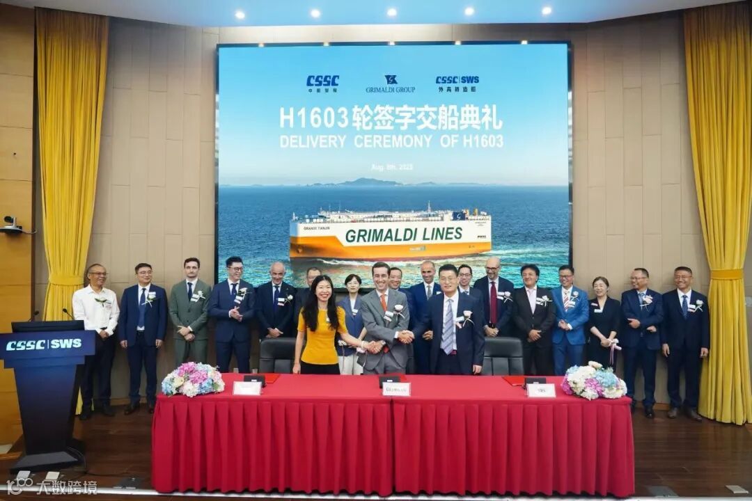 意大利Grimaldi公司、零跑汽车公司、洲际汽车公司、意大利船级社、中国船舶工业贸易有限公司、上海外高桥造船有限公司等相关负责人及参与本船建造的船东船检、船员代表等共同见证本次新船命名交付。