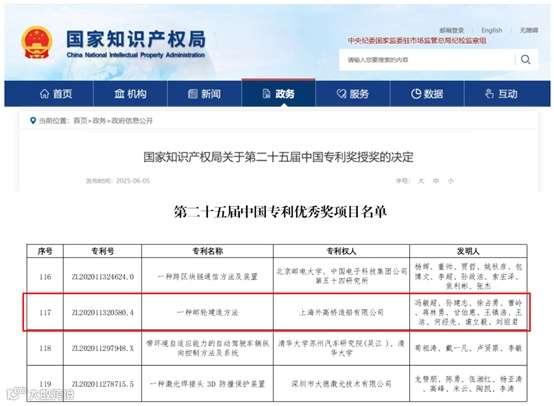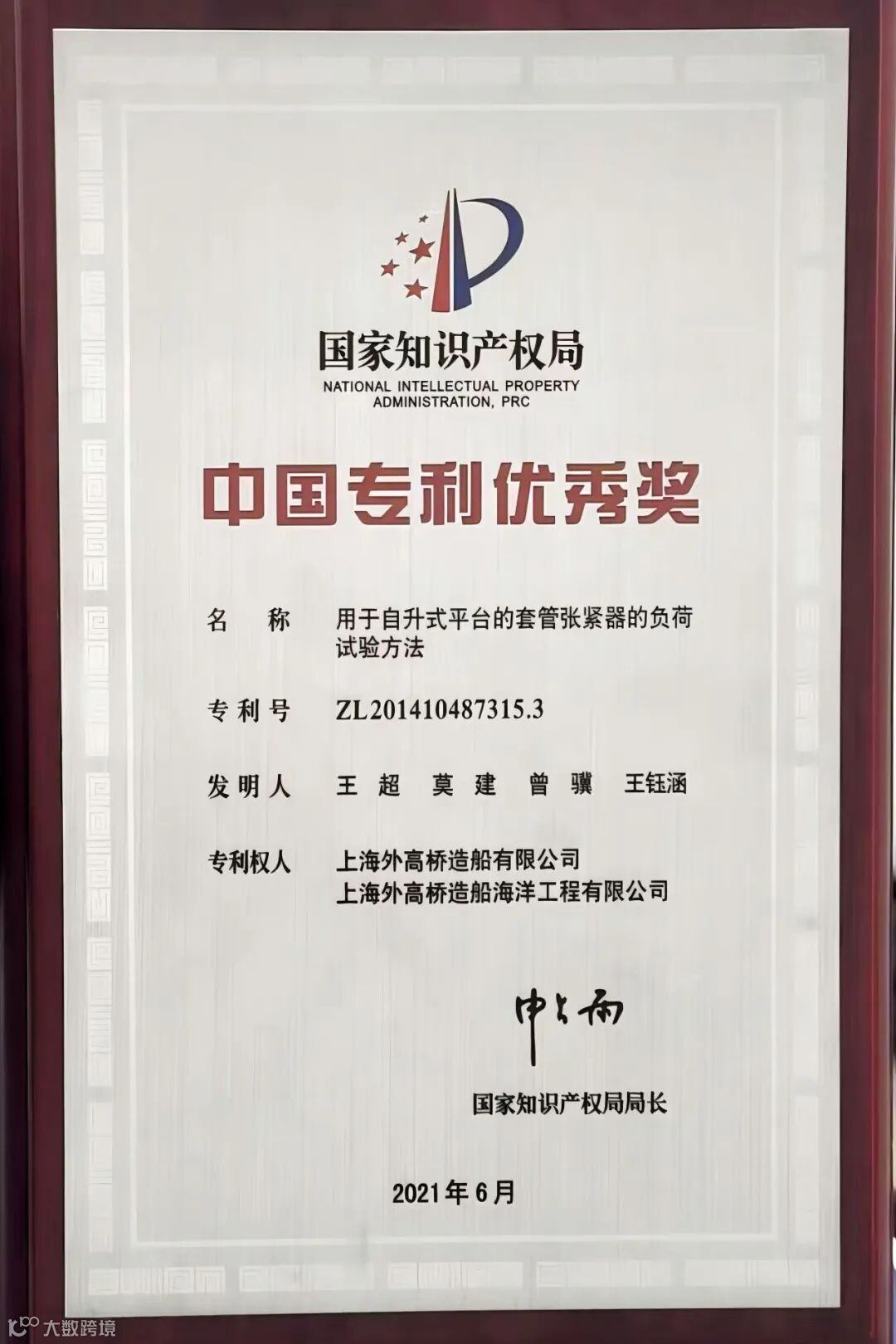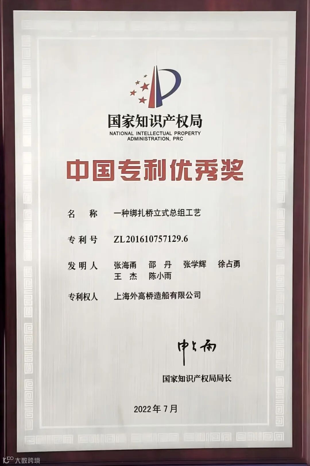 近日,国家知识产权局公布了第二十五届中国专利奖授奖名单,公司申报的“一种邮轮建造方法”获得中国专利优秀奖!