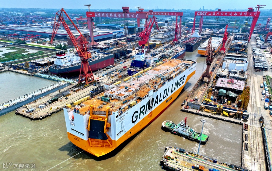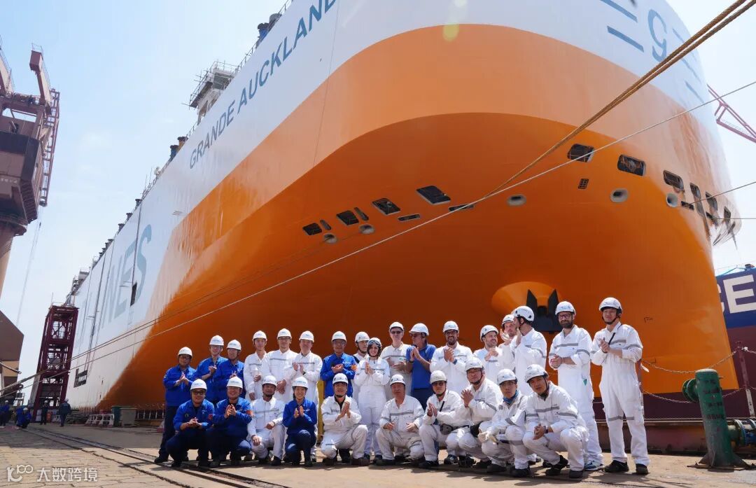 6月25日,由中国船舶集团有限公司旗下上海外高桥造船有限公司分别为意大利Grimaldi公司、希腊Performance公司建造的一艘9000车汽车运输船(PCTC)H1604和一艘11.4万吨阿芙拉型成品油轮H1596同日出坞。至此,外高桥造船上半年连续实现新船开工、下坞、出坞、试航、交付以及第二艘大型邮轮全船贯通、坞内起浮等60项生产大节点,平均每3天完成一项,以赶考之姿、奋进之态实现了2025年“时间过半、任务过半”的既定目标。上半年累计交船15艘/139.7万载重吨、承接订单8艘/107.2万载重吨,为全面完成“十四五”规划收官之年的年度生产经营目标打下了扎实的基础。