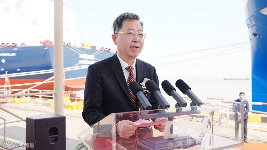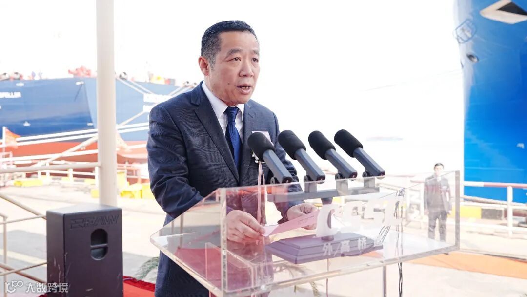 陈刚欢迎各方伙伴的到来,他表示外高桥造船与中信金租合作的首艘8600车LNG双燃料汽车运输船,集成绿色智能技术,创上海最大双燃料汽车船纪录,提前满足IMO 2025环保标准。“文景口”号突破低碳动力与智能能源管理技术,印证中国船舶工业创新实力,将高效助力国产汽车出海。他强调,与中远海运、中信金租的协同创新,深化了产业链融合,为我国抢占航运技术制高点提供支撑,外高桥造船将持续推动绿色航运转型。