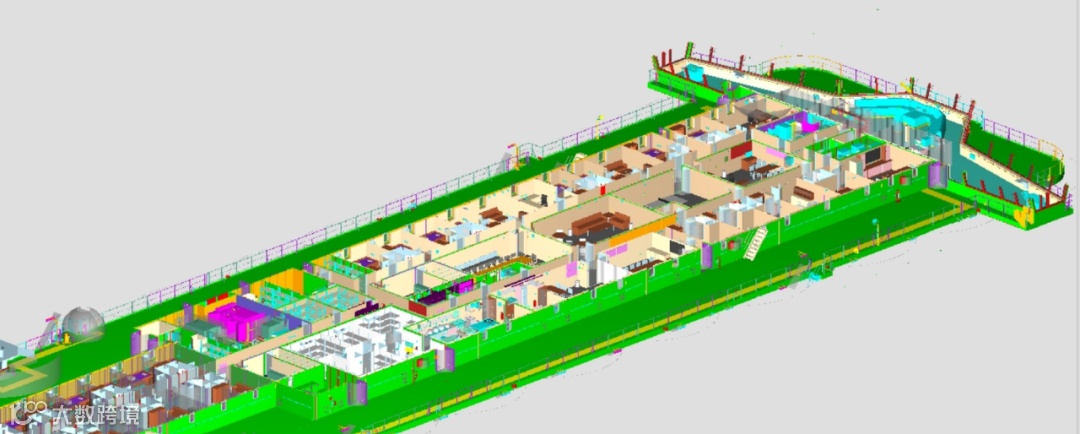 同时,外高桥海工技术部通过建立三维模型,不断优化、完善驾驶室D型天花板箭形排版、舱顶筒灯布置、天花板板缝处空调布风器定位调整等总包商设计,增强舱室美化效果的同时高效完成设计配建工作。