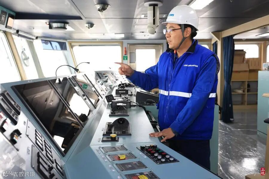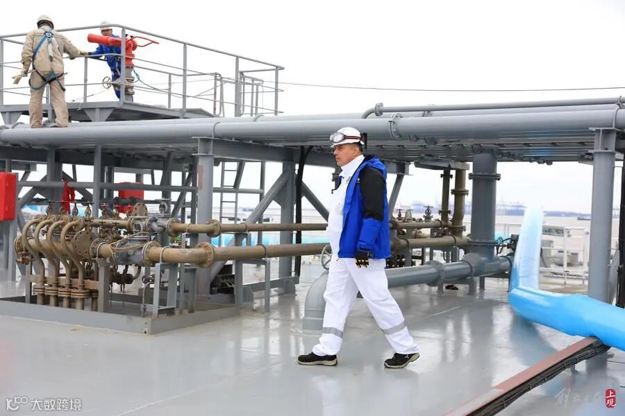 新建油轮试航归来,船舶建造师张程巡回查验设备。