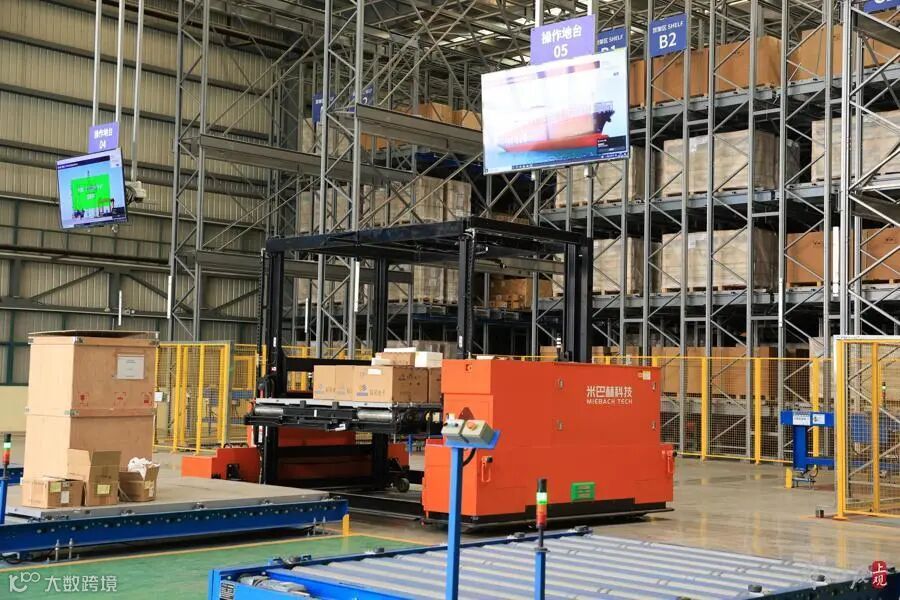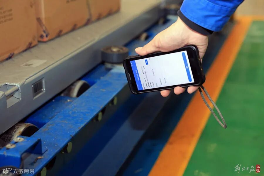 这是工人在智能立体仓库操作邮轮建造耗材入库。