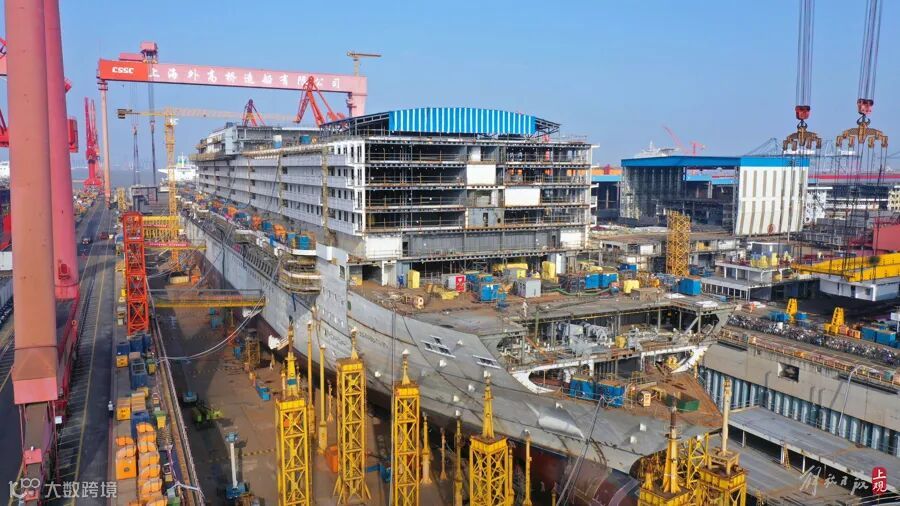 第二艘国产大邮轮,目前已完成搭建至五分之四。