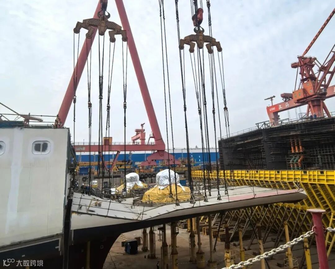国产大型邮轮项目H1509船船体艉部分段PP10S顺利搭载,如期实现