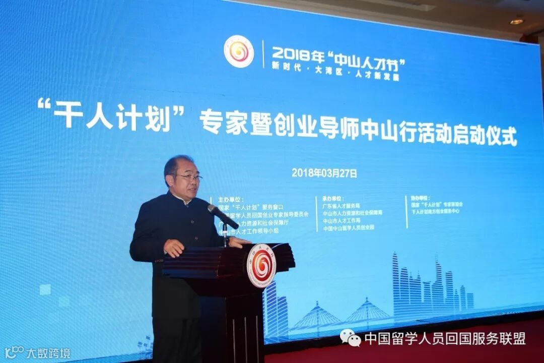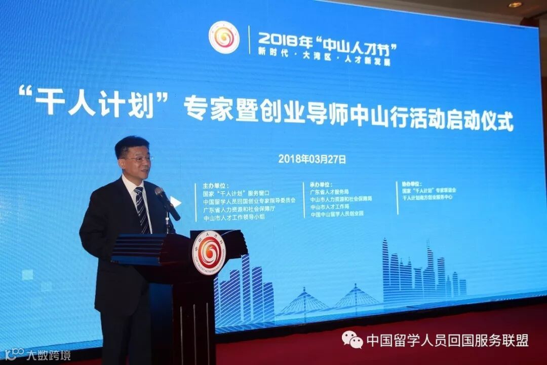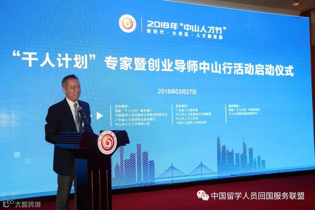 27日上午,中山市政府副秘书长吴军主持活动启动仪式。人社部留学人员和专家服务中心副主任李璟,广东省人社厅党组成员、副厅长郑朝阳,中山市委常委、组织部部长陈小娟分别致辞,“千人计划”专家李正辉作代表发言。李璟副主任在致辞中强调,希望通过本次活动,当地企业与专家可以建立长期合作关系,将更多项目落地生根,开花结果,也希望更多海内外人才在中山挥洒才智,施展抱负,实现人生梦想与价值。
