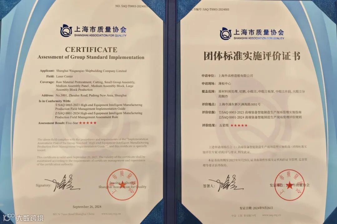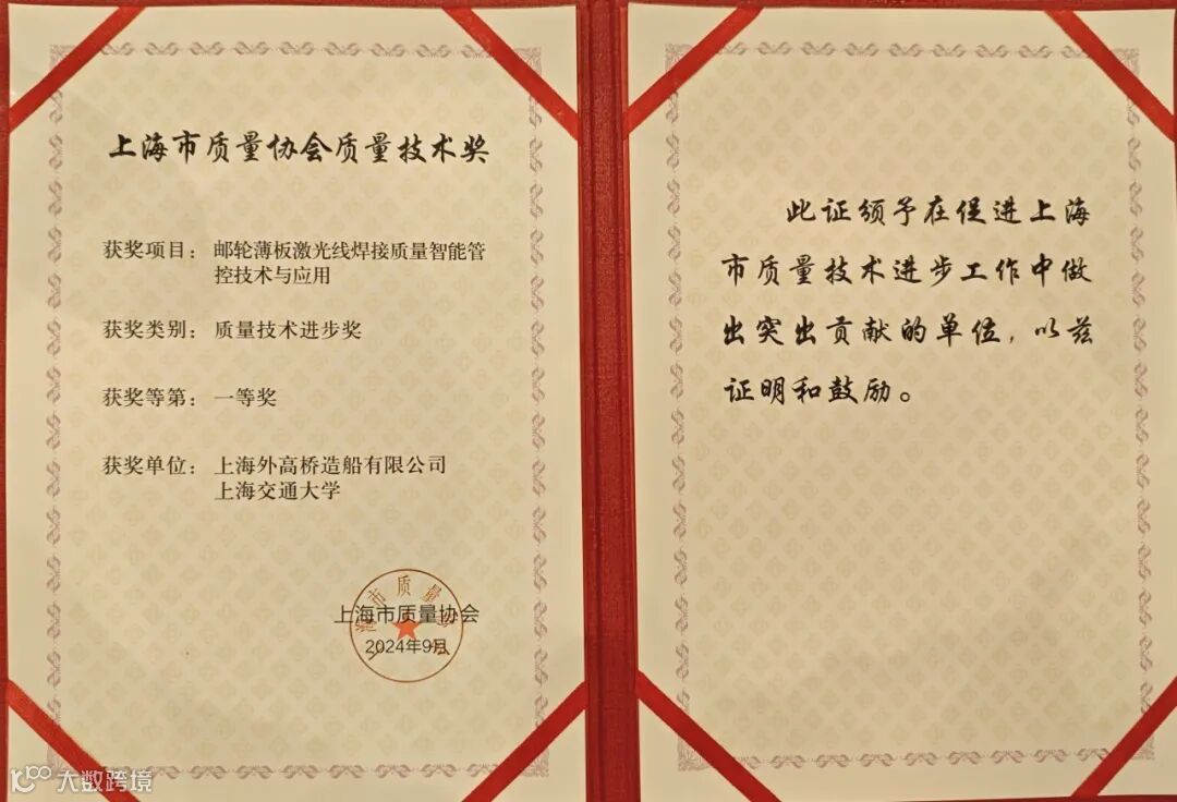 外高桥造船高度重视质量技术提升工作,围绕产品质量标准化、检验检测技术、质量改进方法、数字质量管理等,依托5G网络、AI人工智能、大数据分析等最新科技开展“船舶建造+质量技术”研究,获得《自升式钻井平台建造质量要求》等四项国家标准,并在AR远程检验、邮轮薄板激光焊接等领域处于行业领先地位,有效提升公司质量管理的“硬实力”,夯实质量基础保障。