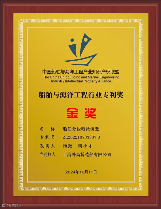 会上举办了第七届船舶与海洋工程行业专利颁奖仪式,公司3项专利获得奖项,其中“船舶分段喷涂装置”和“一种节能定子的安装方法”获得金奖,“一种船舶舱体结构及舱体结构的设计方法”获得优秀奖。公司已连续七年荣获船舶与海洋工程行业专利金奖。