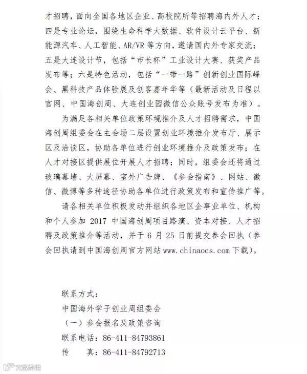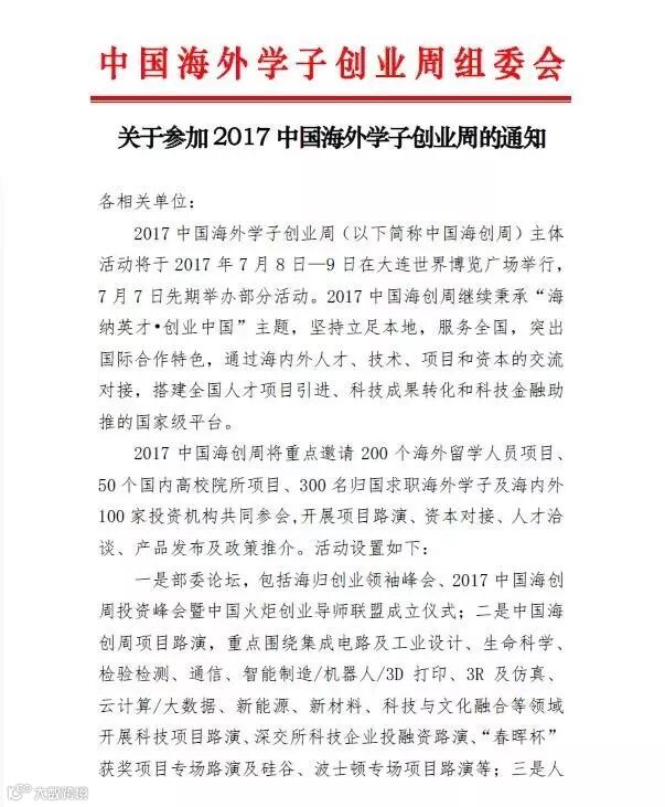 导读:2017中国海外学子创业周主体活动将于7月8日—9日在大连世界博览广场举行,敬请报名参加!