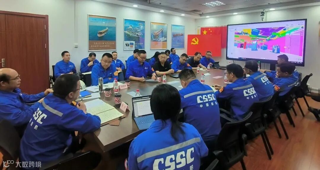 公司总工艺师刘建峰、总监吴晓源以及邮轮项目部、邮轮内装部、设计研究院等部门以及海克斯康数字智能研发中心代表参加会议。