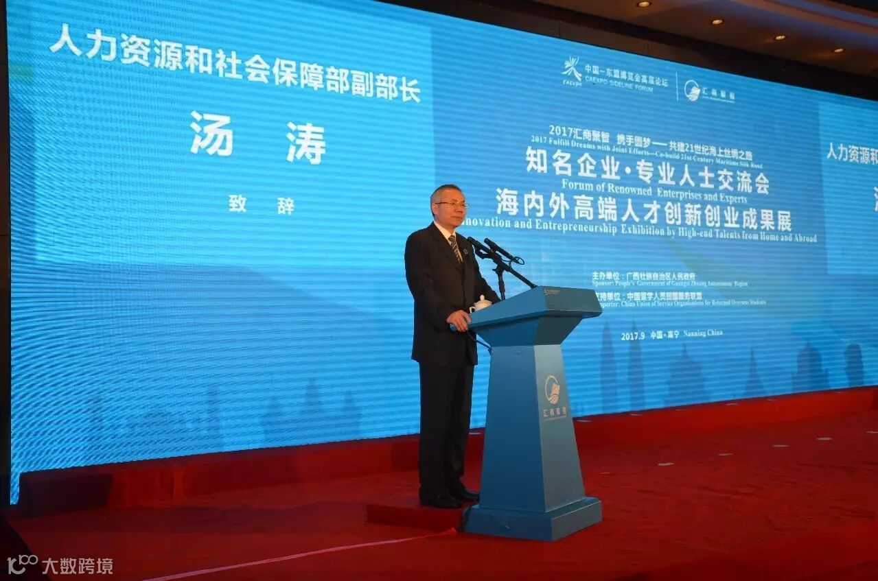 借助中国-东盟博览会平台,9月13日,海内外高端人才创新创业成果展在广西南宁盛大开幕,活动由中国留学人员回国服务联盟与中共广西壮族自治区委员会人才工作领导小组等共同举办,并纳入东盟博览会“汇商聚智·携手圆梦——共建21世纪海上丝绸之路”活动。人力资源和社会保障部副部长汤涛,自治区党委常委、组织部长、自治区党委人才工作领导小组副组长喻云林出席活动。中国和东盟国家、欧美发达国家或地区经贸代表团、“海创展”参展项目负责人等450多人参加了活动启幕仪式。