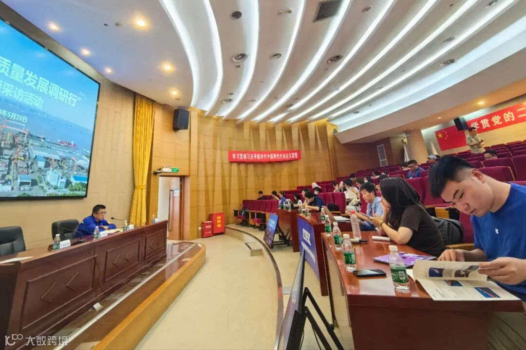 调研采访团前往大型邮轮关键配套车间薄板中心和在建邮轮所处的船坞进行现场考察,并围绕邮轮产业发展、国产首艘大型邮轮运营情况、第二艘大型邮轮项目进展以及企业高质量转型发展等专题进行深入了解。