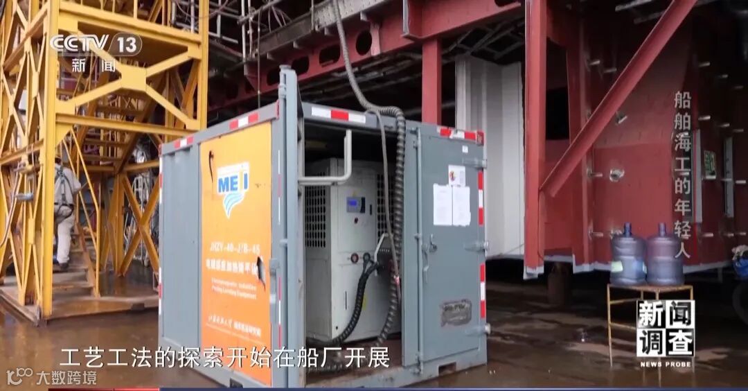 江苏科技大学海洋装备研究院工艺及成形技术研究所所长 许静:这种高频电在长距离的输送过程中衰减是非常厉害的,比如以前可能有很多厂家做到10米、15米,但它做不到60米。大型的船舶一般来说都是分段建造的,每个分段都是比较大的尺寸和结构。作业半径越大,就意味着整个设备的作业效率越高,可以覆盖的范围就越宽。一旦长度超过30米以上,这个衰减几乎是呈指数倍地往下降,等长度达到60米的时候,从电能到最后能产生热能,这个效率可能就降低到30%以下了。
