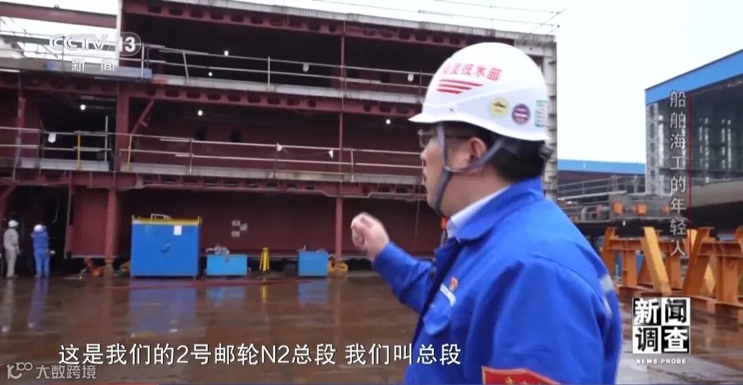 上海外高桥造船有限公司精度技术部副部长 孙建志:这个总段是典型的薄板结构,不平程度在正负15毫米之内。所有的变形都是热的影响,热输入以后就会产生残余应力,一些不均衡导致这些变形。尤其是薄板结构更明显,现在2号船的整体的平整度应该相对1号船已经好很多了。