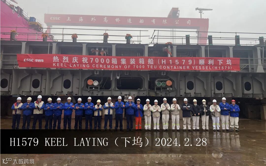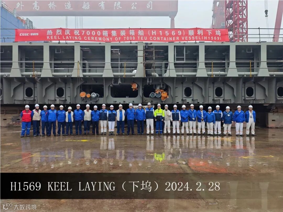 2月28日,公司为SEASPAN建造的第八艘7000TEU集装箱船H1569和为中国台湾T.S.LINES建造的第五艘7000TEU集装箱船H1579顺利下坞。SEASPAN船东驻厂组、T.S.LINES船东驻厂组、DNV船级社、NK船级社及公司相关部门代表共同参加了下坞仪式。