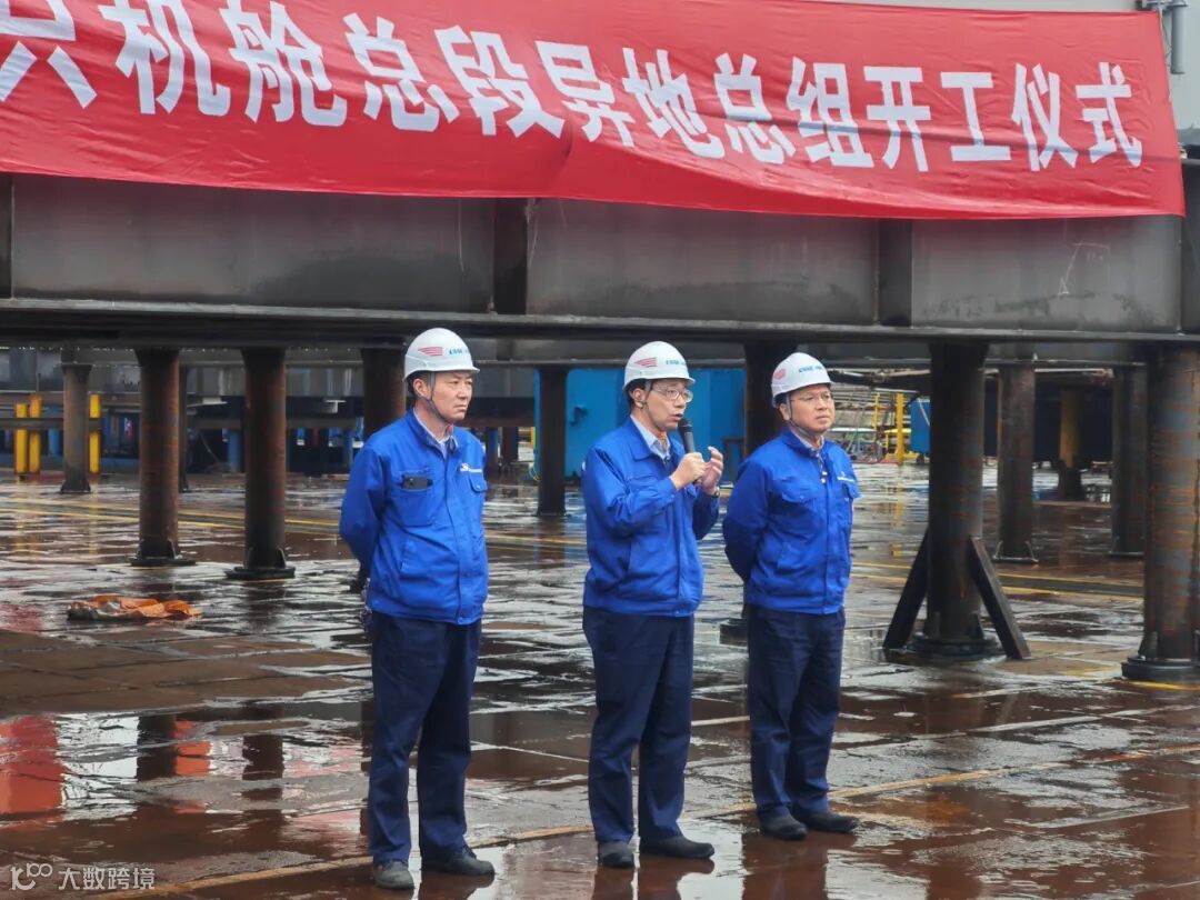 4月23日,公司首只机舱总段异地总组在制造部0号平台顺利开工。公司副总经理张伟、生产总监郭长林、包劼文,以及相关部门人员参加开工仪式。