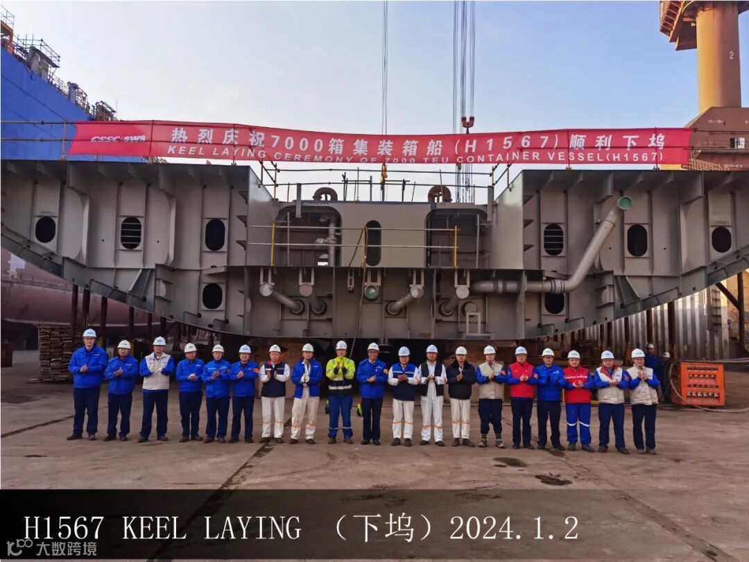 2024年1月2日,公司为台湾TS Line公司建造的7000TEU集装箱船系列第四艘船H1560以及为加拿大Seaspan Corporstion建造的7000TEU集装箱船系列第六艘H1567船顺利下坞。