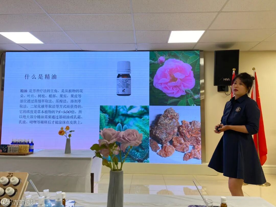 Melody老师是美国国家整体芳香疗法协会认证的NAHA Level3 临床芳疗师,加拿大注册芳疗师RA® 、 精油治疗师EOT®、 临床芳疗师。她用PPT向大家介绍了芳香疗法中精油的作用和治疗优势以及科学依据、各类天然植物精油的介绍等;并重点介绍了夏季驱蚊的要点、业界使用的相关精油成分、DIY驱蚊水配方。