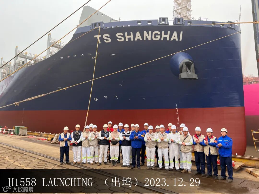 今日,公司单日完成四大生产节点——2整船出坞、2半船起浮,标志着公司一号船坞圆满完成2023年度8批次出坞目标任务,彰显了外高桥造船“批量化建造”模式的优越性,快节奏高质量完成各项生产节点。据悉,外高桥造船船坞建造周期已逐步缩短并稳定在“双42天”,而此次出坞的船舶产品就是坞期“双42天”的常态化之作,标志着公司精益生产之路取得长足进步,收获累累硕果。