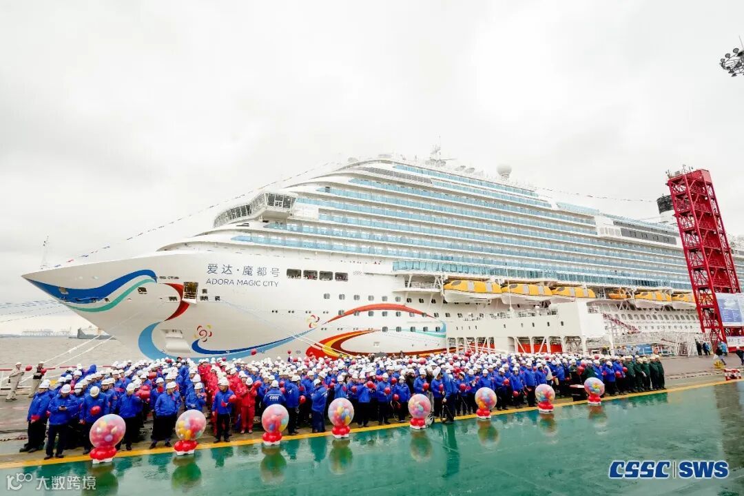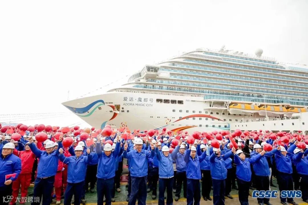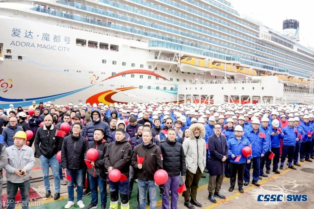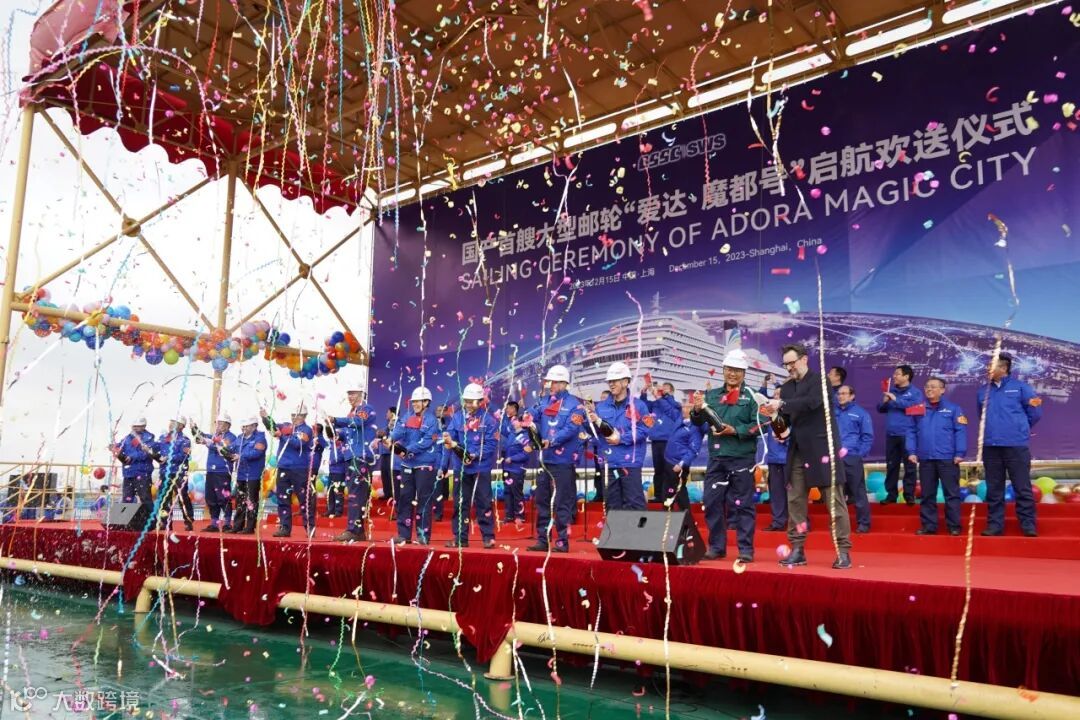 12月15日下午,外高桥造船的员工们欢聚一堂,怀着无比激动的心情为“爱达·魔都号”举行了启航欢送仪式,邮轮正式移交运营方,开启全新的商业旅途。