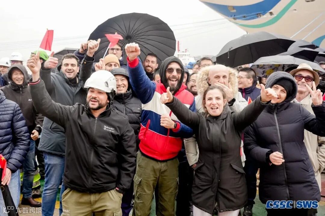 公司党委书记、董事长王琦等公司领导以及邮轮办公室、邮轮项目部、邮轮内装部、总装二部全体员工和其他相关部门代表共同前往码头欢送邮轮启航。启航仪式由公司党委副书记、总经理陈刚主持。中船芬坎蒂尼(JVPC)、嘉年华技术服务(CTS)、中国船级社(CCS)和劳氏船级社(LR)的代表共同见证启航。