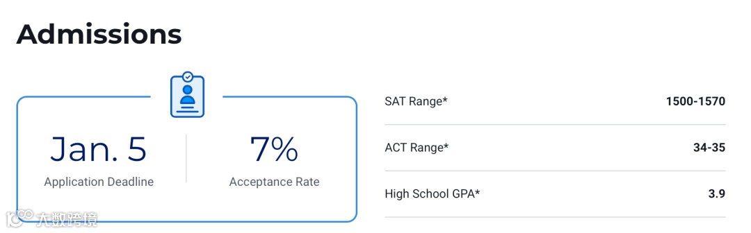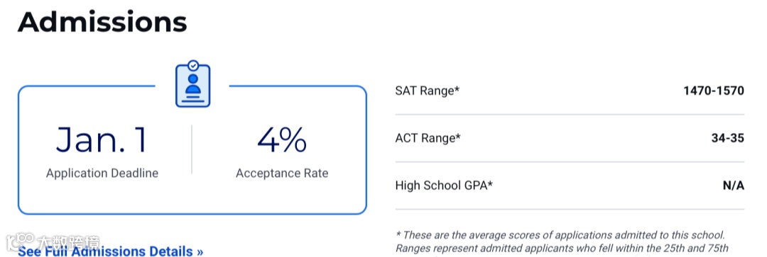 今年录取新生的平均成绩:SAT 1522;ACT 34.2;