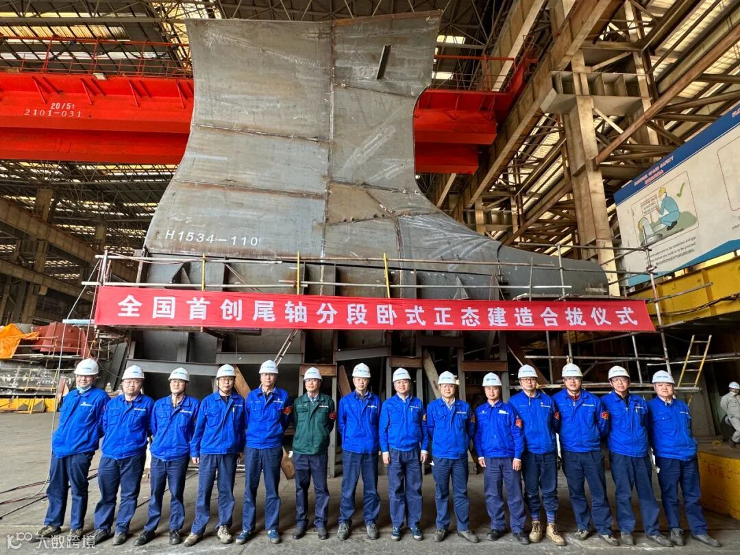 SWS外高桥造船为全面贯彻公司“十四五”发展规划,聚焦“邮轮引领、一体两翼”高质量发展目标和“融合发展、创新突破”管理主题,坚定不移地推动先行分段生产向模块化、智能化建造转变;以流程再造、工艺革新为抓手。组织生产管理部、设计一部、设计二部、工艺工法部、制造部、精度技术部、品质保证部、安环保卫部等部门推进了尾轴分段卧式正态建造新工艺。