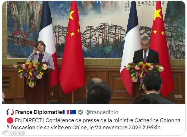 对于中国政府此举,11 月 23-24 日在北京进行访问的法国外交部长科隆纳于两国联合记者会上也作出友好回应: