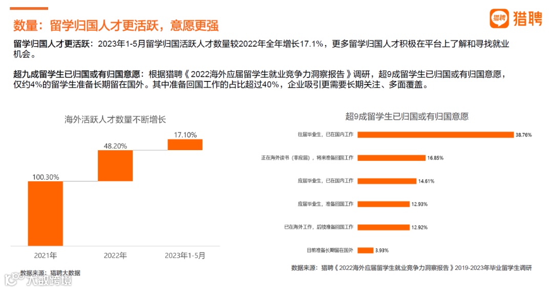 其中,超过40%的留学生准备回国工作,这要求企业在吸引人才时需采取长期关注和多面覆盖的策略。