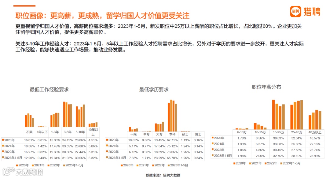 企业愈发重视留学归国人才的价值,高薪岗位不断涌现。2023年前五个月,薪酬超过25万的职位占比显著提升,超过六成。