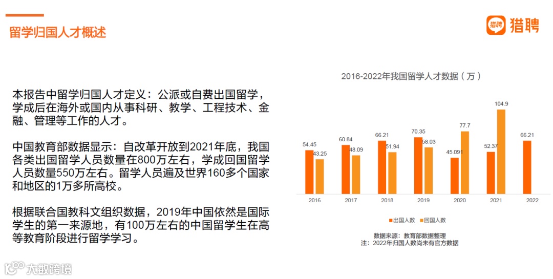 近期“猎聘大数据研究院”发布了《2024中国海外留学人才洞察报告》,从海外留学人才储备情况、画像描述、人才流动趋势、企业对海外留学人才的需求等做了全面解析。