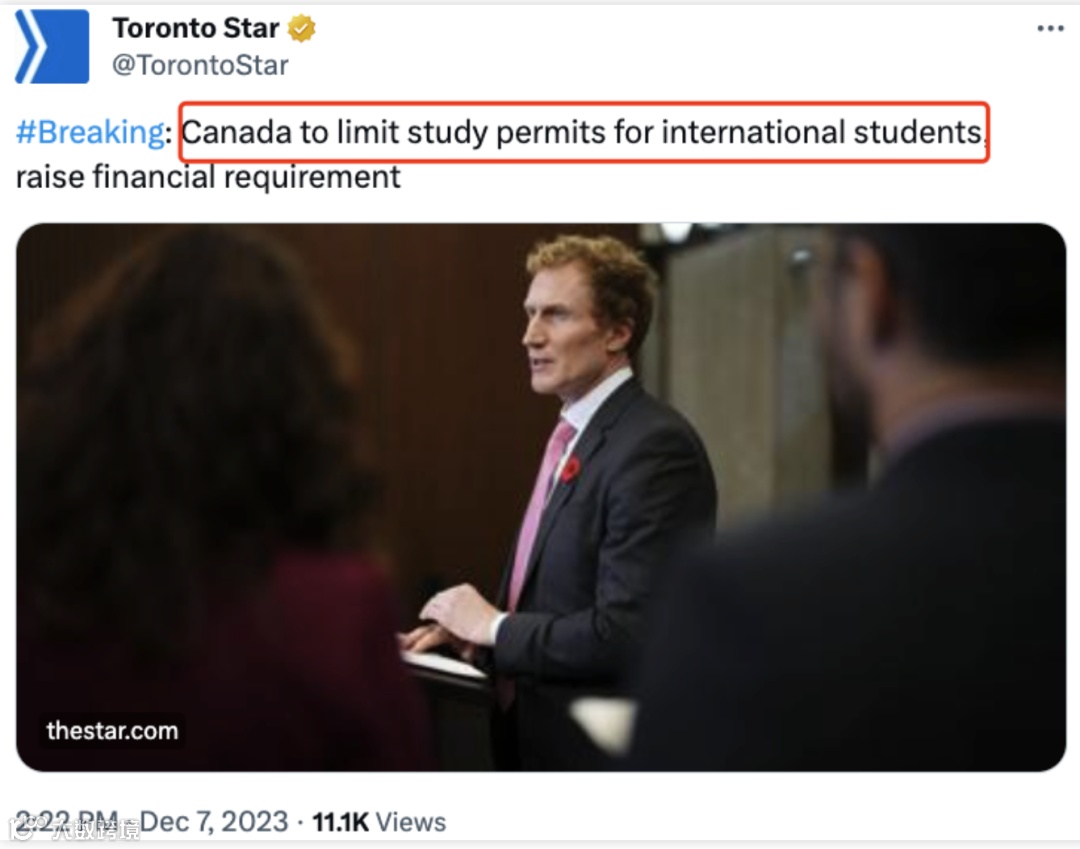 与此同时,加拿大联邦政府今日宣布将“大幅”限制发放学习许可的数量,以应对加拿大国际学生计划中存在的欺诈和滥用问题。