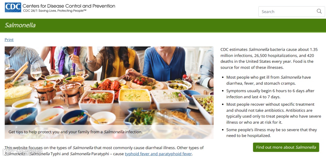 沙门氏菌中毒的症状包括腹泻、发烧和胃痉挛。严重病例,尤其是儿童、老年人和免疫功能低下的患者,可能会导致住院甚至死亡。