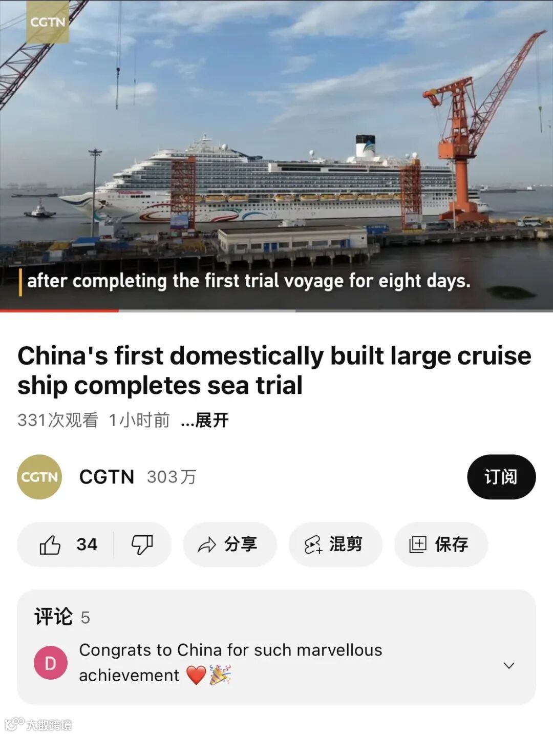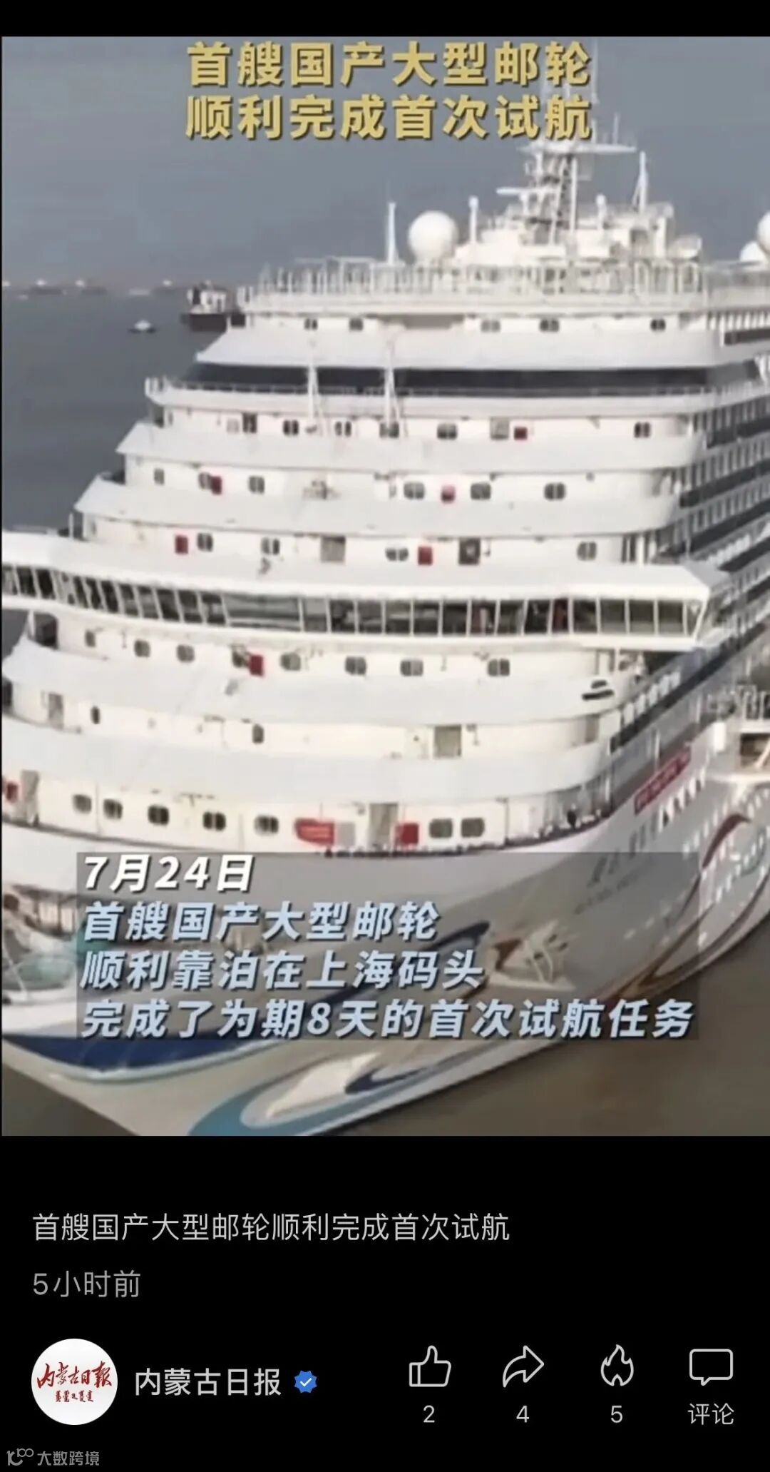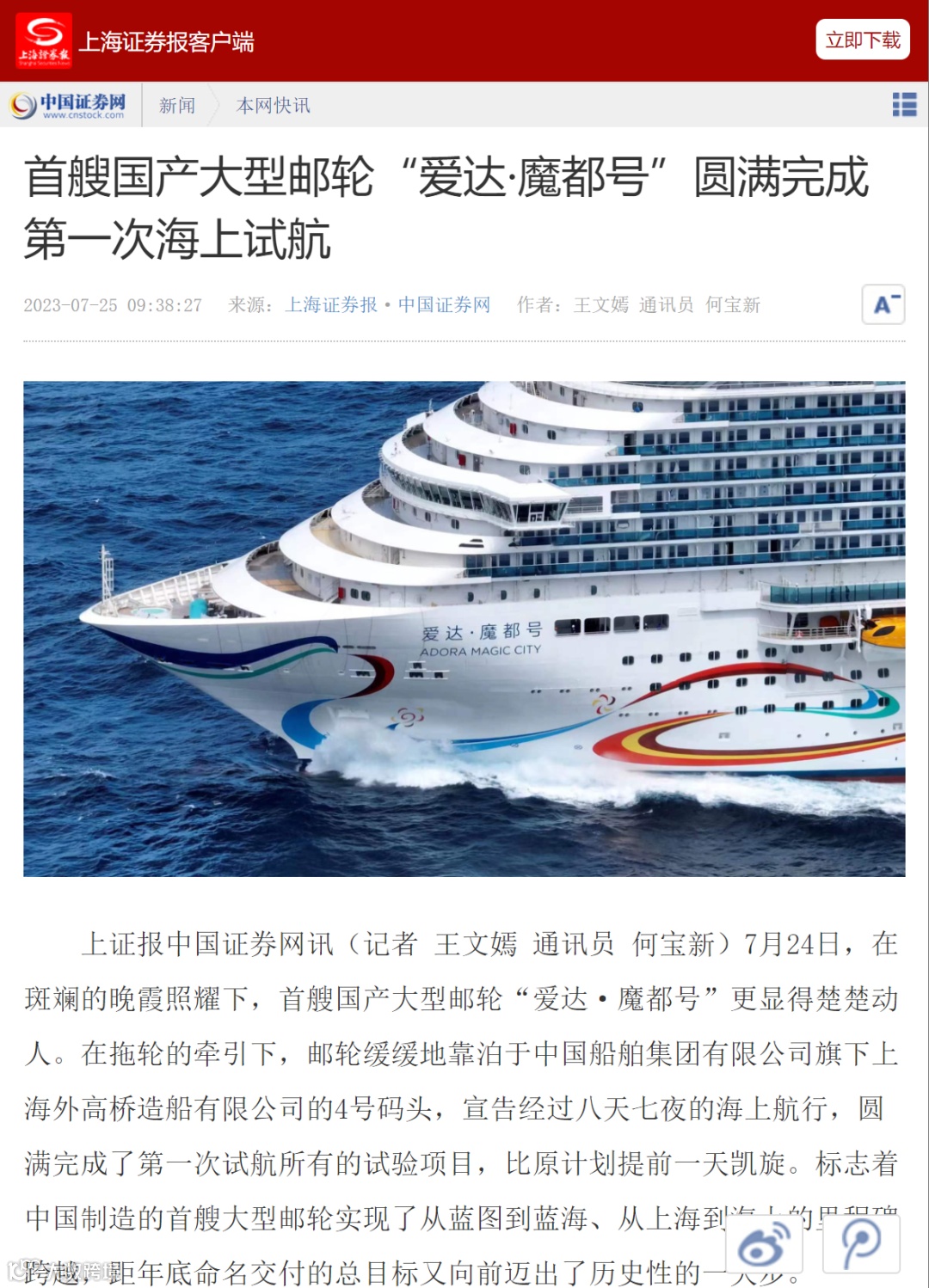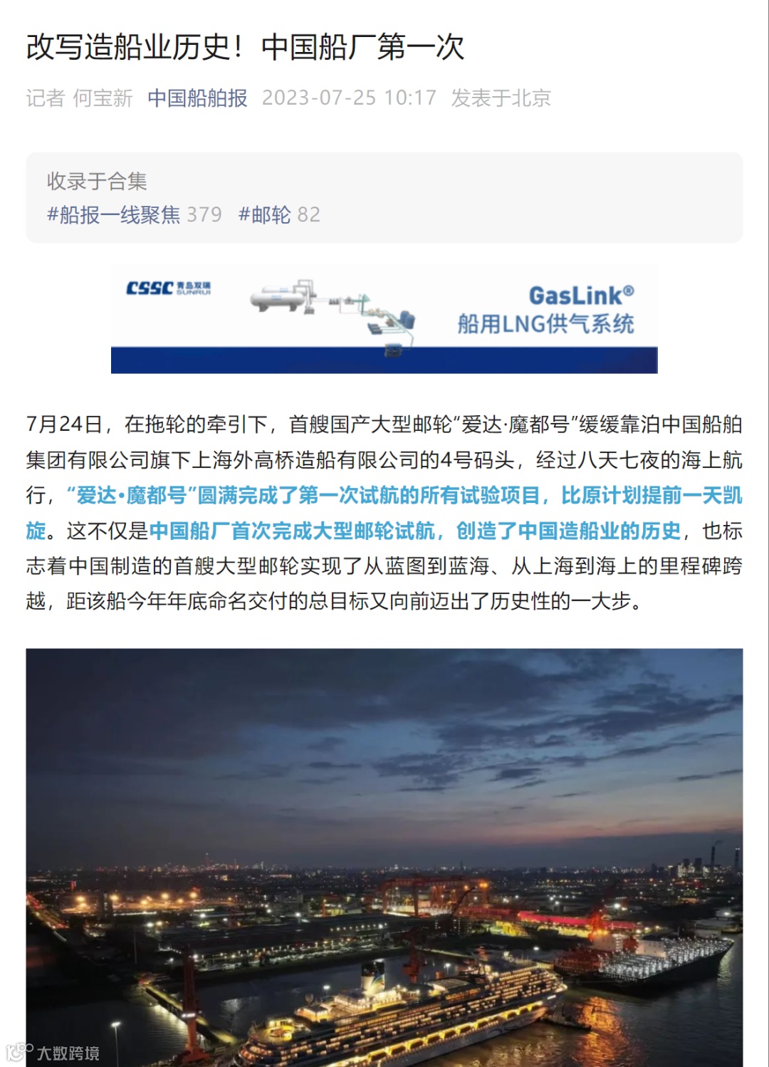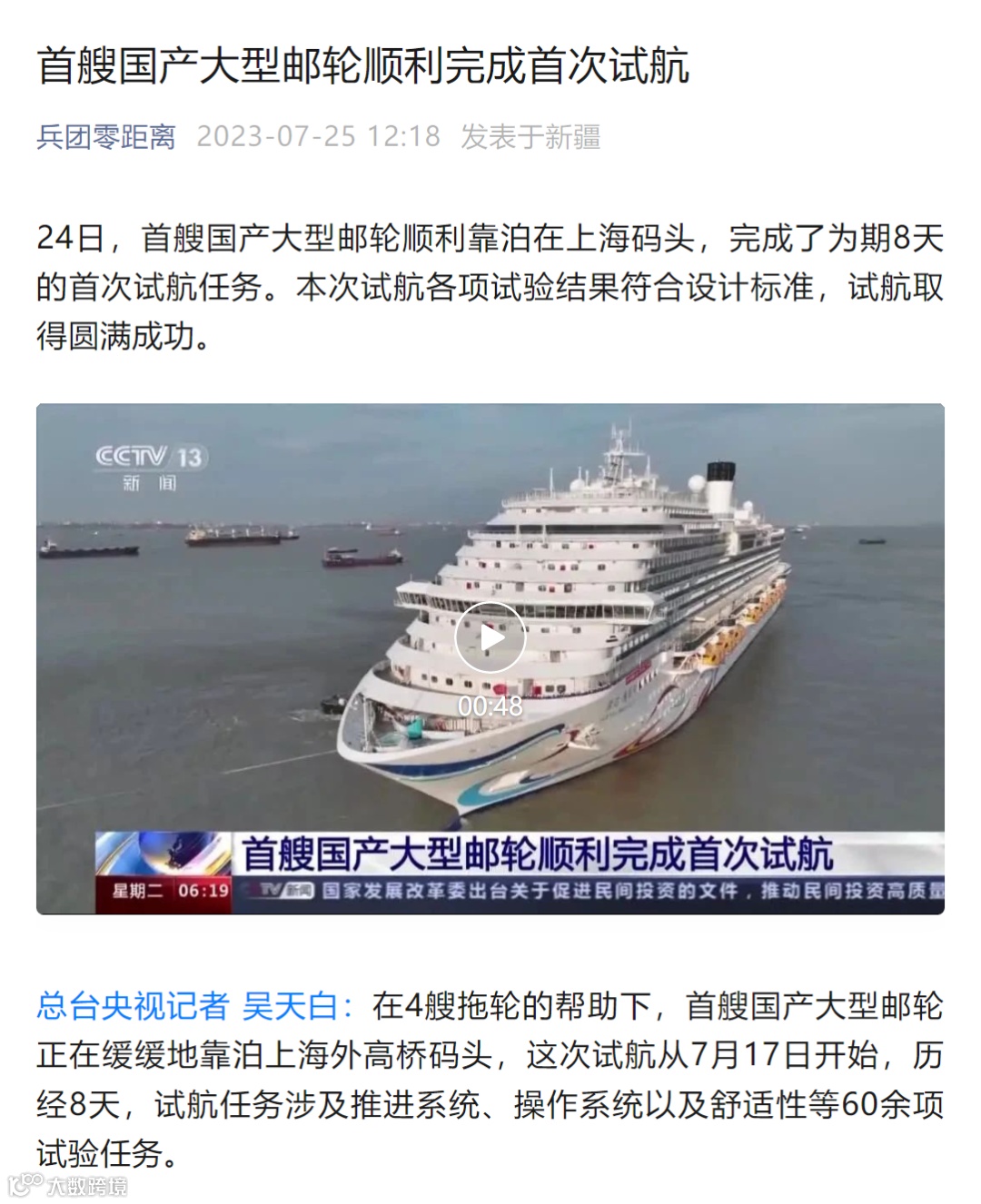 经过八天七夜的海上航行,“爱达·魔都号”圆满完成了第一次试航的所有试验项目,比原计划提前一天凯旋。这是中国船厂首次完成大型邮轮试航,创造了中国造船业的历史!