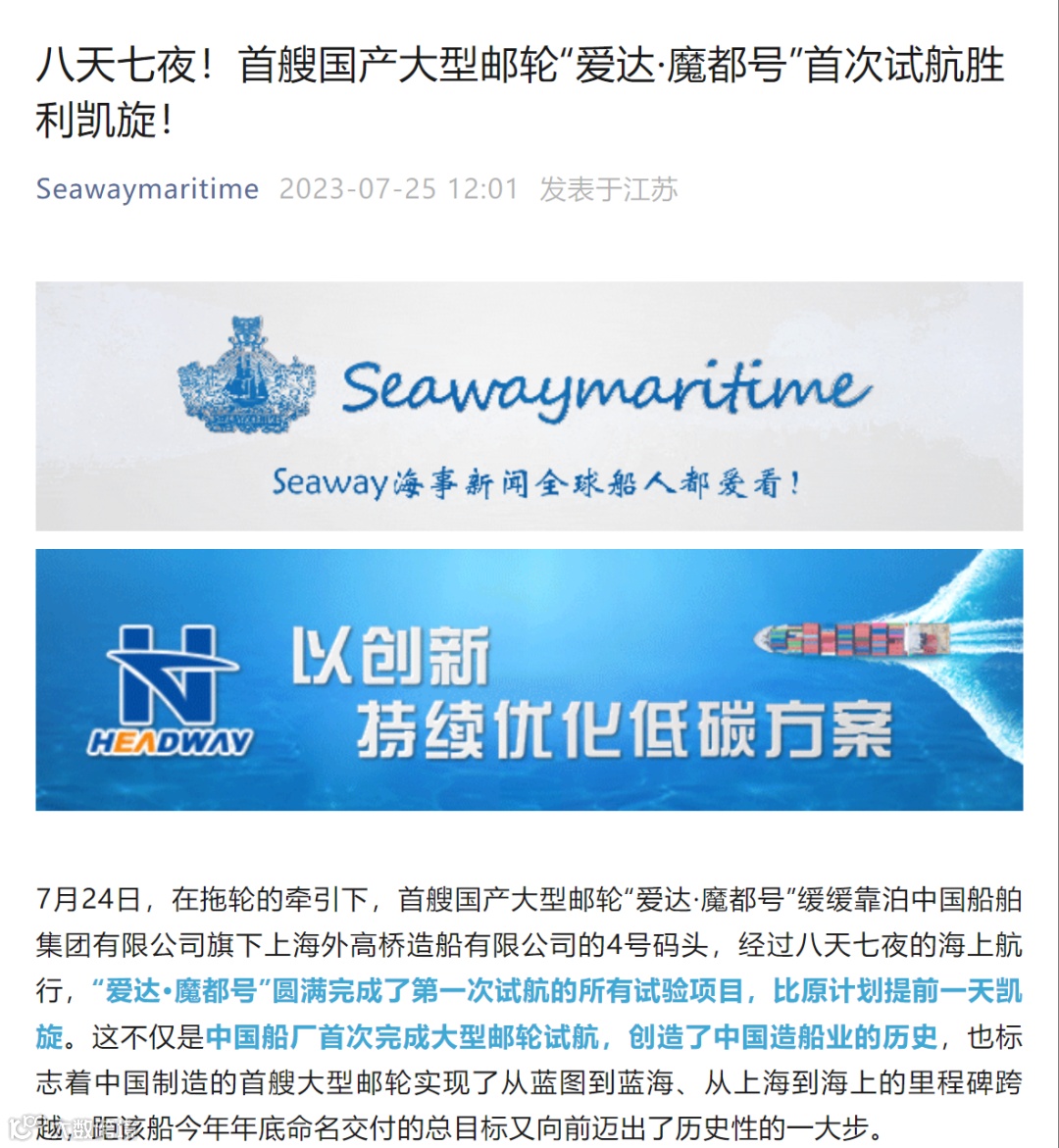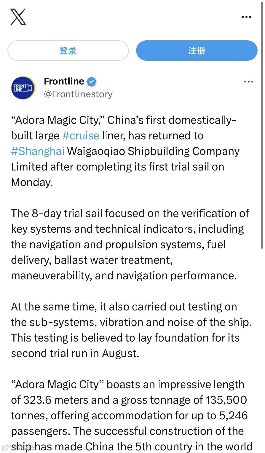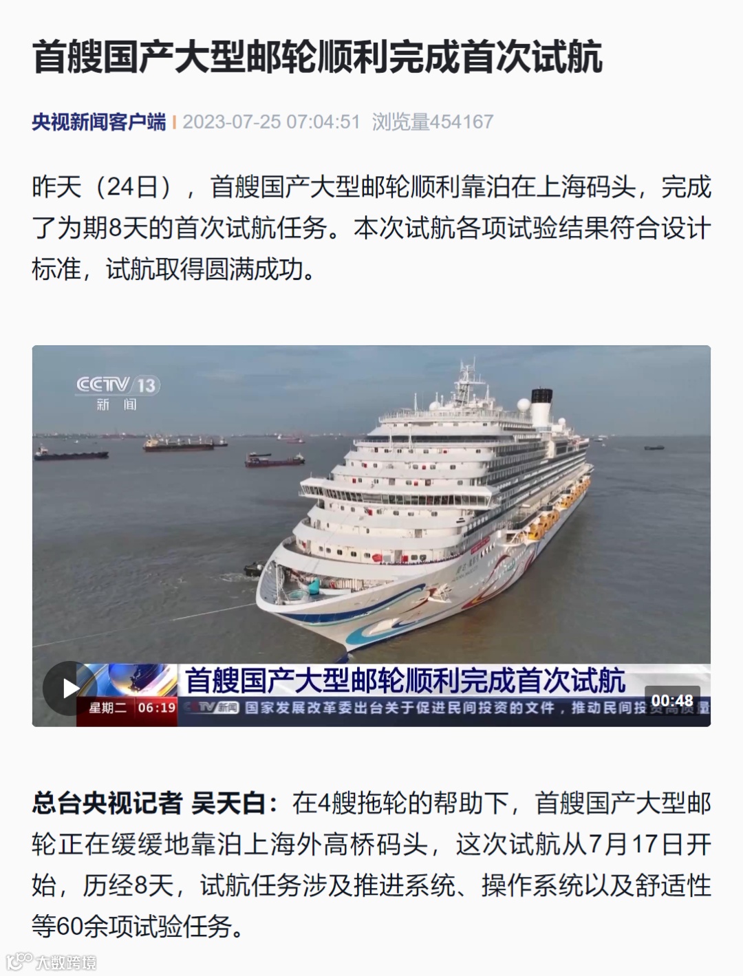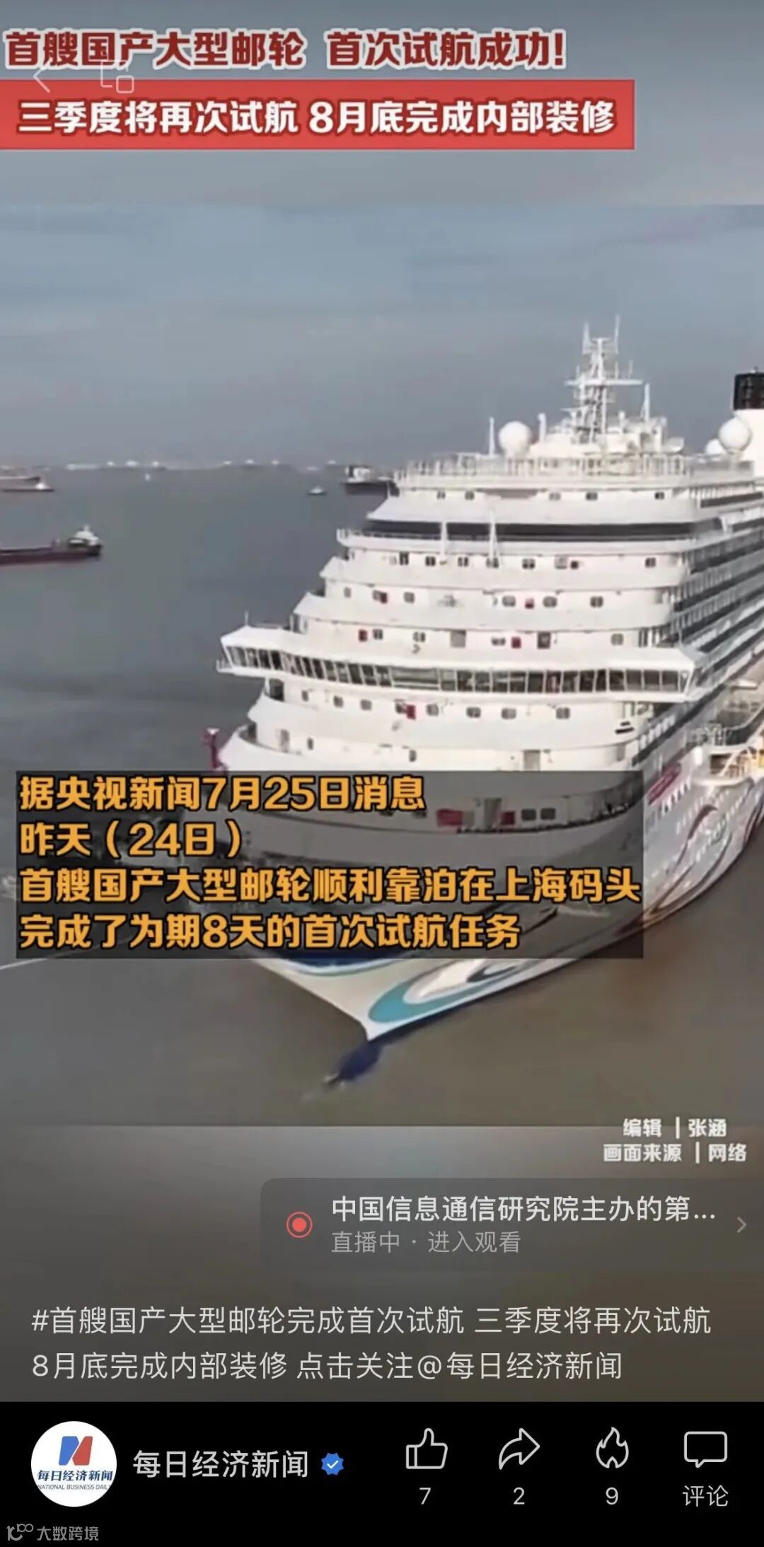 经过八天七夜的海上航行,“爱达·魔都号”圆满完成了第一次试航的所有试验项目,比原计划提前一天凯旋。这是中国船厂首次完成大型邮轮试航,创造了中国造船业的历史!