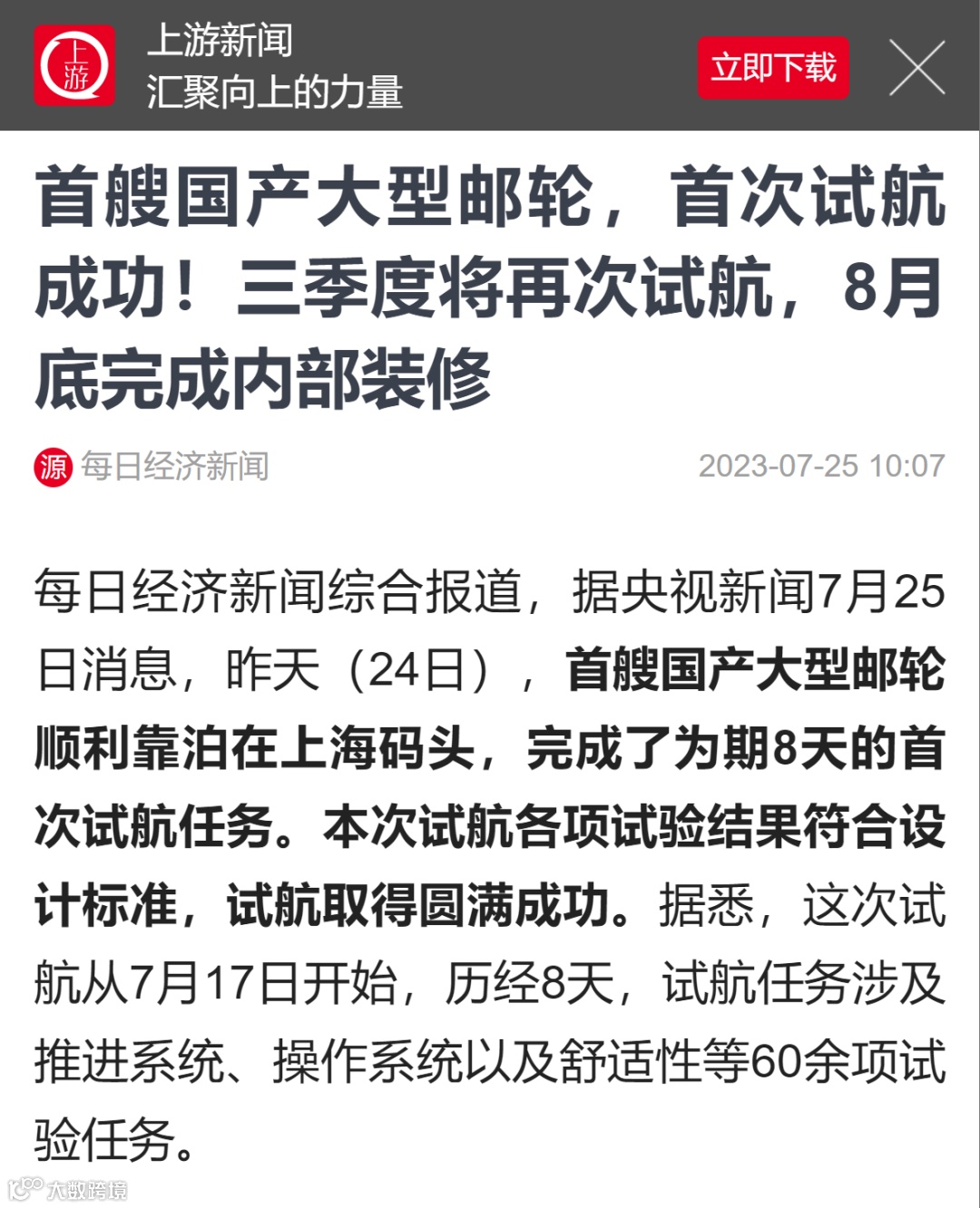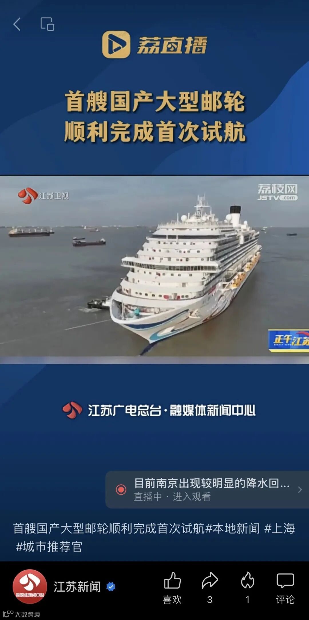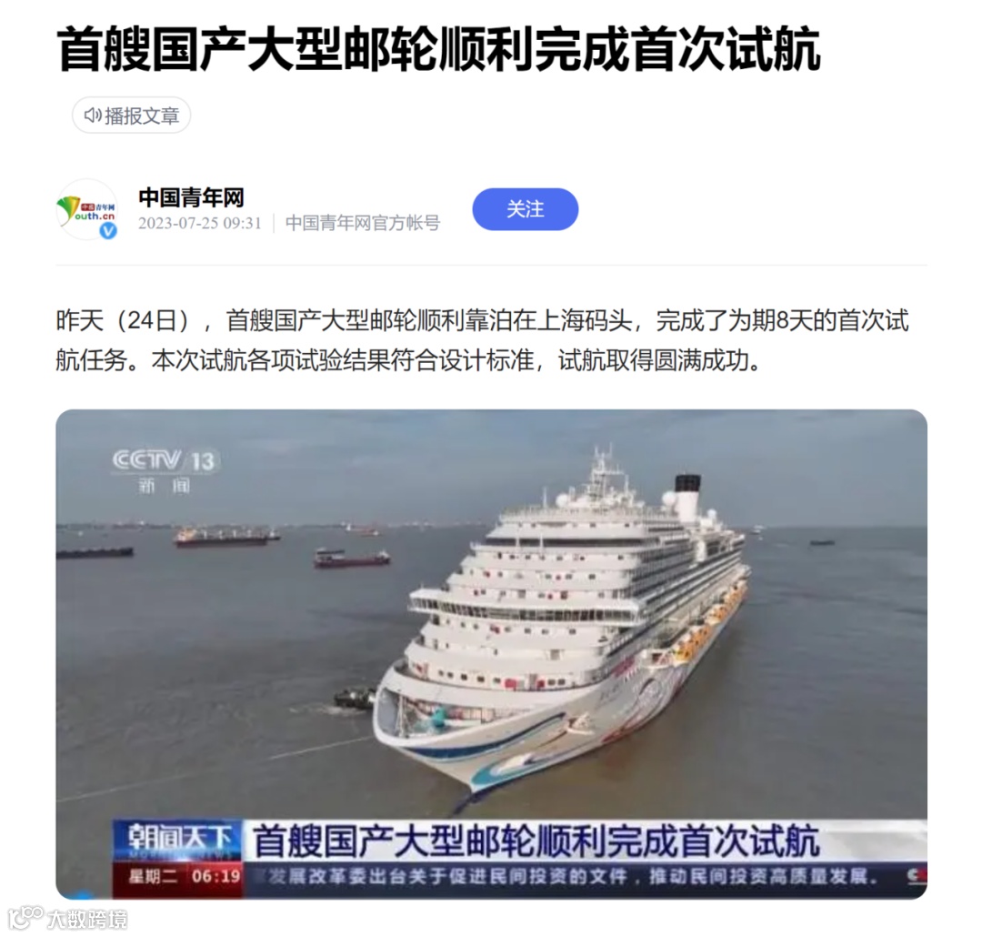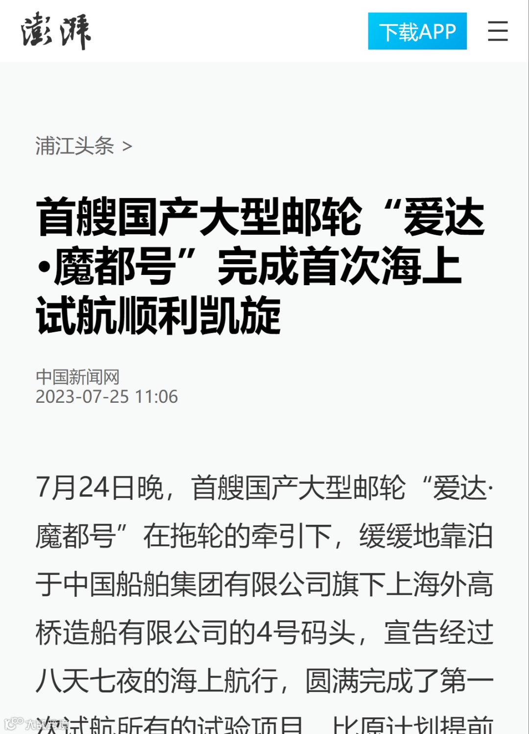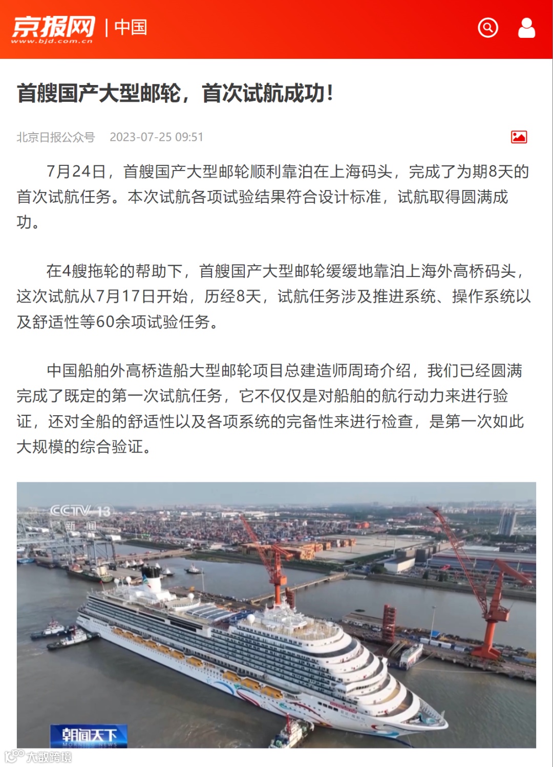 经过八天七夜的海上航行,“爱达·魔都号”圆满完成了第一次试航的所有试验项目,比原计划提前一天凯旋。这是中国船厂首次完成大型邮轮试航,创造了中国造船业的历史!