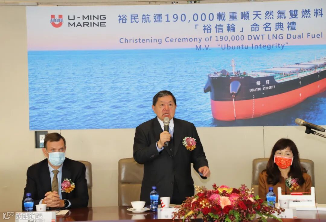 徐旭东说,裕民航运深入贯彻ESG和环保理念,此次命名的双燃料动力散货船是适合航运业发展需求的新型、节能船只。船舶产品从建造、命名、交付到运营是一个长期的过程,需要大家共同努力。他对外高桥造船、英美资源及各方的全力支持和不懈努力表示敬意和感谢,并期待未来能够与各方线下相会。