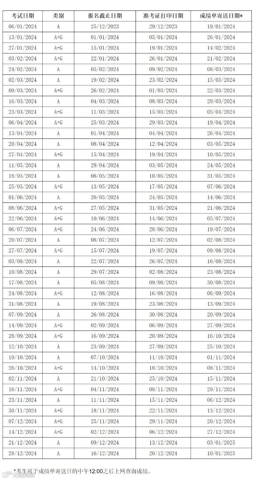 报名截止日期、准考证打印日期和成绩单寄送日期