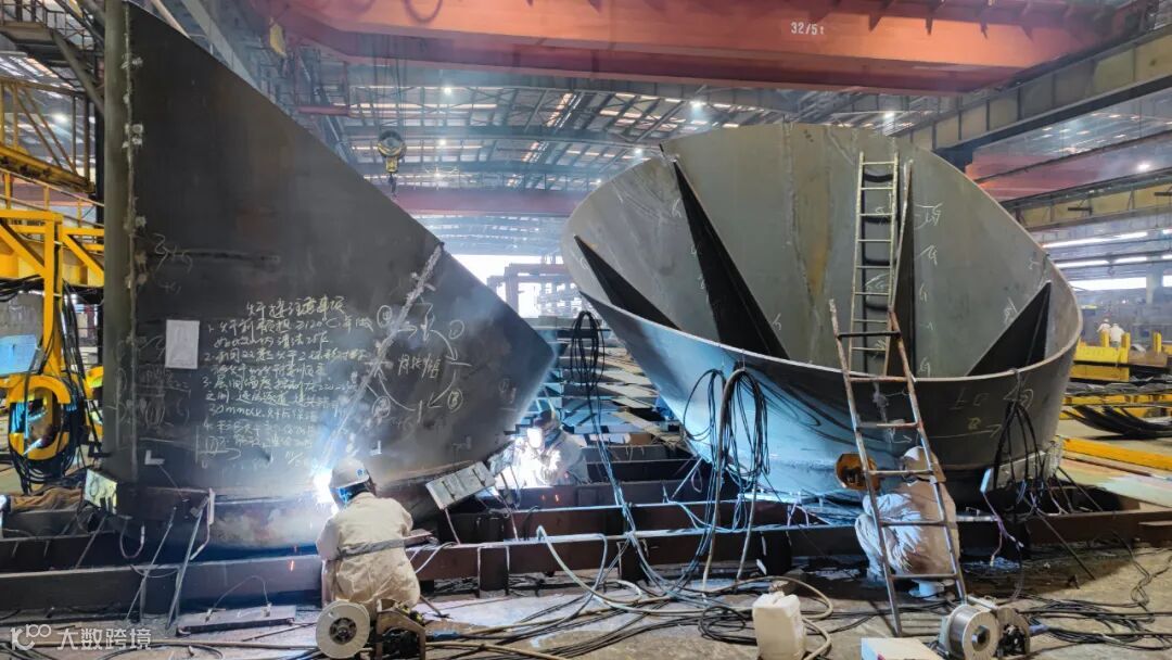 目前,公司已连续完成了2型船、9艘船的建造任务,通过了外部报验,合格率100%;其次开展了余量补偿优化、外板线型改善,提升了锚台分段整体制造品质。锚台锚唇建造周期由首艘船的28天80个工时逐步压缩到12天51个工时,取得了周期和工时双减少,为公司箱船批量化快速建造提供了有力保障,丰富了外高桥造船的工艺惯例库。